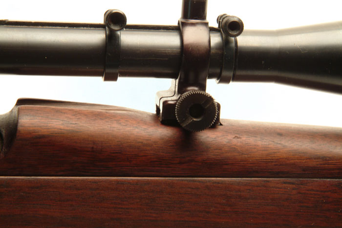 *SPRINGFIELD MODEL 1903 A1 NATIONAL MATCH “U.S.M.C. SNIPER”. Cal. 30. SN 1524678. This rifle has a bbl date of “3-39” which is at the tail end of production for the Springfield ’03 A1 National Matches. Bbl is star gauged with correct star gauge number underneath the wood. The polished nickel steel bolt is numbered to the gun and the Unertl U.S.M.C. scope has the correct mounts and bases on it. A Vaver micrometer sight has been added to this gun. Springfield rear site leaf is not present. CONDITION: Bbl action retains 98% of the orig matte gray Parkerizing of that period with bright shiny bore. Front band is Parkerized where the middle band is blue (also typical of that era), both in excellent condition retaining 90% of their finish. Triggerguard and floorplate assembly retain approx. 85% with the prominent wear being on the front of the floorplate. Coarse checkered buttplate with trap is also in excellent condition. Buttstock is a C Stock in excellent condition with no visible cartouche or inspection stamp present. Upper hand guard has not been heavily modified and still retains the entire sighting groove which is not common but acceptable. These hand guards were all individually made at the Philadelphia Ordinance Depot, so there are no 2 exactly alike. (There was no jig for doing this.) U.S.M.C. scope has approx. 90% of its orig finish, although it appears that the front scope ring has been refinished (which is also common because they were an alloy and the finish tended to flake off). Telescope has excellent optics and the mica scope can is in excellent condition with the spring assembly intact. Vaver sight retains all of its finish. 4-58351 BK21 (4,500-8,500)