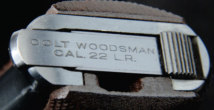 *COLT WOODSMAN SPORT MODEL Cal. 22. SN 142767. This 4-1/2” sport Woodsman is in new in the box condition. As far as I can tell, it shows no signs of ever being fired, cocked or handled. The mechanics are perfect and the finish is as new. Has no scuffs, scratches, dings mars or corrosion of any kind on it. Pistol comes in its orig maroon box with the instructions, the test target, the screwdriver and the cleaning brush. Box is in very good condition with 1 tear on the front lip of the cover, almost in the middle. Other than that, a couple of minor nicks on the corners. The end label is in tact as well as the extra sticker that says 4 1/2” bbl fixed sight. This Woodsman would be nearly impossible to upgrade other than to find one in a perfect box. Wm. Hancock Collection 4-58577 BK87 (1,500-3,000)
