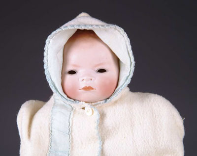11” BYE-LO BABY. A nice package! This Bye-Lo is on a marked body and comes in its cotton bunting and has an extra white gown and newer red romper suit with matching bonnet and white booties. CONDITION: Eyes have fallen in but are present inside of head. JL 1-3085-1067 (150-250) Auction: Advertising, Toy & Doll - Spring 2004 Please Note: All prices include the hammer price plus the buyer’s premium, which is paid by the buyer as part of the purchase price. The prices noted here after the auction are considered unofficial and do not become official until after the 46th day. |