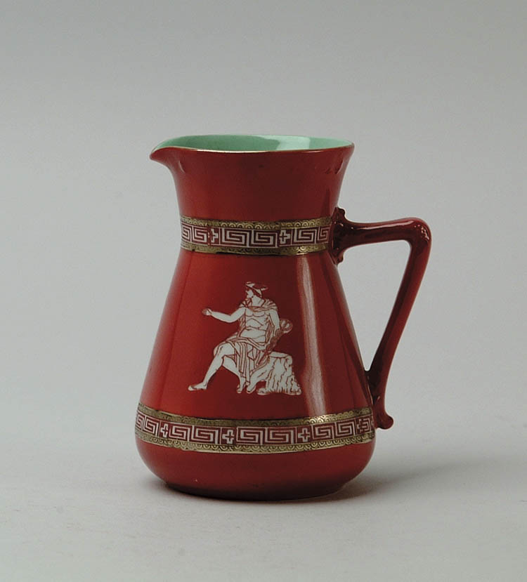 ROYAL BAYREUTH CORINTHIAN CREAMER. Burnt orange with a Grecian figure. SIZE: 5″ tall. CONDITION: Very good to excellent. 5-67046 (100-200)