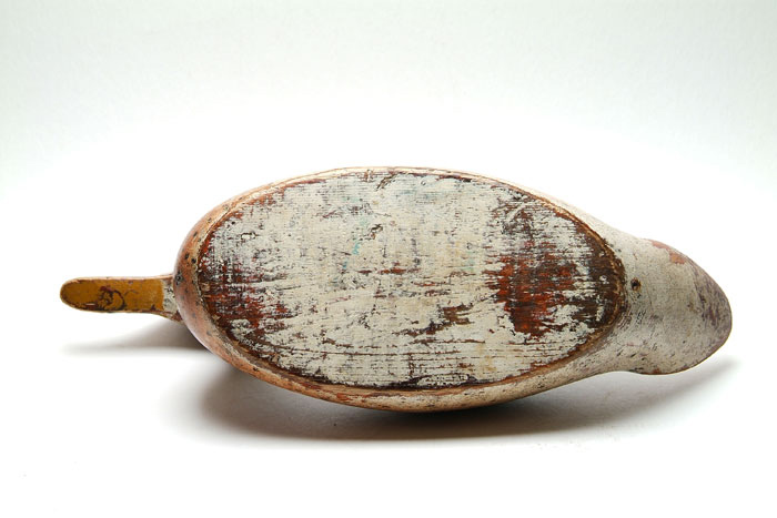 LOT OF FIVE MASON DECOYS. Mason produced the finest manufactured decoys during the market hunting era from the late 1800’s into the 20th C. The decoys were stylistically very appealing and the orig paint patination is also extremely appealing to collectors today. Mason also produced decoys in three grades: there is standard grade, challenge grade and their premier grade. Most of these decoys are of the better grade and feature glass eyes. They include a carved Bufflehead in what appears to be orig paint. A life-sized mallard in old paint with some touch up, two hen Mallards also in orig old paint with some old touch up and also a hen Mallard in orig old paint. CONDITION: Paint generally worn on all as noted above. Decoys show plenty of use. Dr. Poppell Collection 4-58951 (1,500-2,500)