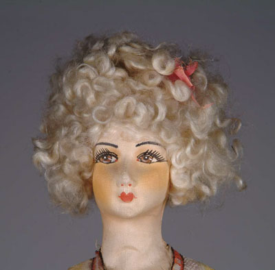 FRENCH BOUDOIR DOLL. Interesting French boudoir doll has cloth covered head with painted features and cloth body. Doll has curly blonde hair and black cloth shoes. SIZE: Approximately 26” t. CONDITION: Some staining to back of neck and dent to front of neck. Slight opening on seam at one foot. Clothing is worn and slightly stained. 1-2852 (100-300) Auction: Advertising, Toy & Doll - Spring 2004 Please Note: All prices include the hammer price plus the buyer’s premium, which is paid by the buyer as part of the purchase price. The prices noted here after the auction are considered unofficial and do not become official until after the 46th day. |