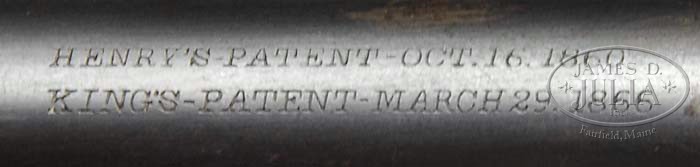 RARE EARLY “HENRY” MARKED PRESENTATION WINCHESTER MODEL 1866 SADDLE RING CARBINE. SN 16705. Cal. 44 RF Henry. Fine early ’66 carbine with 20″ bbl, full magazine with integral front sight/front band, a forearm band and 2-position rear sight graduated 100-300-500 yards. Left sideplate is engraved in period script “D Edwin Hawley / New York / from H.E.H. Dec. 25th 1868”. Left side of frame has a staple & ring. Mounted with nicely figured, uncheckered straight grain American walnut with straight stock & crescent brass buttplate containing a 3-pc orig all steel cleaning rod. Left side of lower tang is stamped with SN along with “CV” and “W”. Matching number is also found inside toe of buttplate. A quick search of the internet disclosed no information pertinent to D. Edwin Hawley. This carbine was produced very shortly after the transition from the Henry rifle to the Model 1866 Winchester and these ’66s are rarely found today with high orig finish. They were the first repeating lever action carbine, ever, and were immediately adopted by all manner of frontiersmen for use in the great American West, generally carried in saddle scabbards & wagon boxes or across saddle bows, usually under harsh conditions of weather & dirt with very limited or nonexistent maintenance. When one is fortunate enough to find such an early carbine, the bbl address is usually completely worn away with rounded edges on the receiver and damaged wood. While this carbine has been used and shows evidence of blood pitting on the bbl, over the chamber area, front sight & spots on the bbl, it is in remarkably strong orig condition. PROVENANCE: Wes Adams Estate Collection. CONDITION: Fine to very fine. Bbl, as noted above, has heavy blood pitting over chamber area and left side of the rear sight, on the front bbl band & sight with lesser spots on the bbl which have been cleaned; middle band has a couple of additional small spots; loading gate retains about 60-70% orig blue; receiver retains sharp edges and a wonderful, smooth, dark coffee patina; hammer retains dark case colors, turning brown on rear edge; lever retains dark case colors in sheltered areas being a brown patina on the loop; wood is sound with a few light nicks & scratches and the buttstock retains most of an old refinish; forearm is sound with a hand worn finish, possibly refinished. Mechanics are fine, bright shiny bore with a few scattered spots of pitting. 4-44551 JR449 (10,000-20,000)