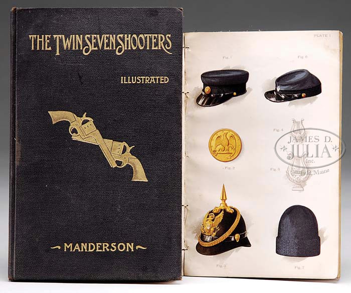 BOOKS FROM THE LIBRARY OF STEPHEN DECATUR. Seven books of nautical interest including REGULATIONS GOVERNING THE UNIFORM OF COMMISSIONED OFFICERS etc., (1897) with numerous color litho plates; Kemps’ A MANUAL OF YACHT AND BOAT SAILING London: 1880. Small folio in poor condition but with many diagrams; SKETCHES OF NAVAL LIFE…SHORES OF THE MEDITERRANEAN…FROM THE BRANDYWINE AN D CONSTITUTION FRIGATES authored by a “Civilian” (G. W. Blagden) in 1829, published in New Haven. Small Octavo, two volumes (complete) the large folding map of the Mediterranean Sea in fine condition but significant damage to spine and boards. The folding map in volume II equally fine. We believe this to be a presentation copy with the later ownership signature of Stephen Decatur dated in 1903. WITH: An early issue of Mark Twain’s A TRAMP ABROAD (1880, with the “Moses” caption to the front plate, a rough copy). WITH: CORBESIER’S PRINCIPLES OF SQUAD INSTRUCTION FOR THE BROADSWORD. Phila: 1869. Complete with the ten plates but with some water stains and discoloration to boards front and rear with the signature “Stephen Decatur”. WITH: Two late 19th Century manuscript account books for SONS OF THE REVOLUTION OF THE STATE OF NEW HAMPSHIRE. Stephen Decatur was the treasurer for this organization. WITH: THE TWIN SEVENSHOOTERS. A presentation copy accompanied by a TLS by the author Charles F. Manderson. A good copy. WITH: A seventh edition of THE WHITE MOUNTAIN GUIDE BOOK. The frontice map fine, the large folding map with foxing, tears, etc. and with the signature of W. B. Decatur, Kittery Point, Maine. With about seven others. CONDITION: Varying degrees of condition and completeness. This lot should be examined. 9-98697 (500-1,000)