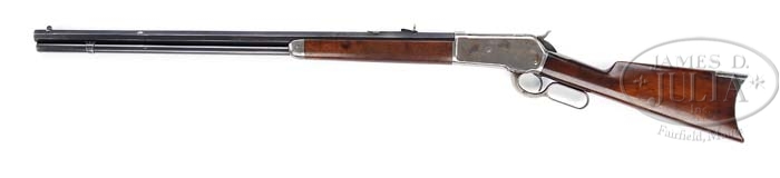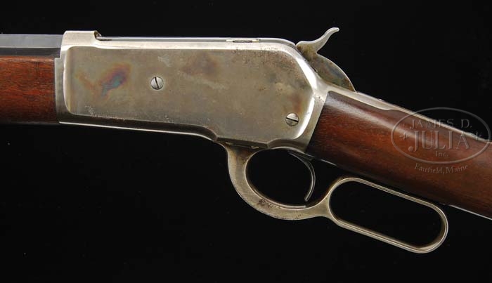 SPECIAL ORDER WINCHESTER MODEL 1886 LEVER ACTION RIFLE. SN 55407. Cal. 40-82. 28″ oct bbl, full magazine, fine blade front sight with set screw, serrated side sporting rear with set screw. Top bbl flat marked “MANUFACTURED BY THE / WINCHESTER REPEATING ARMS CO. NEW HAVEN. CONN. U.S.A.”, adjacent receiver “40-82 W.C.F.”. Standard receiver mounted with nicely figured straight grain walnut, straight grip, crescent steel buttplate, standard forend with nose cap. Accompanied with Cody Firearm Museum Winchester letter identifying as 40-82 rifle, 28″ oct bbl, received in warehouse May 21, 1891, shipped from warehouse August 20, 1981 with three other guns on order number 9489. CONDITION: Fine. Bbl and mag tube retain 90+% orig blue, silvering at sharp edges, usual nicks and scratches, thinning in areas and blending with silver and brown patina. Receiver retains visible orig case colors, blending with silver hardening, a couple of small areas of surface oxidation and typical minor nicks and scratches. Hammer shows strong orig case colors, silvering at sharp edges. Lever shows good orig case colors in protected areas blending with silver patina. Stock is sound with normal minor nicks and dings and retains orig finish that has flaked and worn blending with hand worn patina. Forend is sound with usual minor marks and retains flaked and worn orig finish blending with hand worn patina. Mechanics are crisp with a nice shiny bore. 4-38359 BDT238 (4,000-6,000)