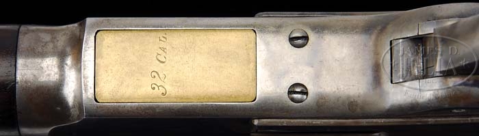 *WINCHESTER 1873 DELUXE LEVER ACTION RIFLE. SN 557334. Cal. 32 WCF. 24-1/4″ oct bbl, full mag, nickel Rocky Mountain front sight, V-notch sporting rear with set screw, usual bbl markings. 3rd Model receiver with coarse knurl peep sight and single set trigger. Mounted with “XX” quality walnut, checkered pistol grip, Winchester hard rubber grip cap, smooth steel shotgun butt, H-style checkered forend with nose cap. Accompanied with Cody Firearms Museum Winchester letter identifying as 32 cal. oct bbl rifle, set trigger, checkered stock, pistol grip, no sights, shotgun butt, case hardened, blank piece, received in warehouse April 6, 1901, shipped from warehouse April 18, 1901. CONDITION: Very fine. Bbl and mag tube retain 95-98% orig blue, faint muzzle wear, thinning on sharp edges and some minor nicks and scratches. Receiver retains most of its orig colors that is fading except in protected areas, worn on bottom, blending with some gray patina. Loading gate shows most of its fine nitre blue. Hammer has silvered blending with brown patina. Lever shows orig case colors on side blending with silver patina across bottom. Stock is sound with sharp checkering, normal nicks and scratches and retains most of its orig finish. Buttplate retains orig blue, silvering on sides and heel and toe. Forend is sound with sharp checkering on sides, slightly worn on bottom diamond. Normal nicks and scratches and retains orig finish with hand worn patina across bottom. Nose cap has faded colors leaving a silver hardening color. Mechanics are crisp with a bright shiny bore. 4-38357 BDT331 (20,000-30,000)