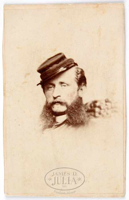 CDV OF GEORGE ARMSTRONG CUSTER SANS UNIFORM. In pencil on reverse, “Gen. Custer”. Also stamped “JNO Holyland, Washington D.C.”. CONDITION: 1/2 image water stained. 4-32372 JJ281 (1,500-2,500)