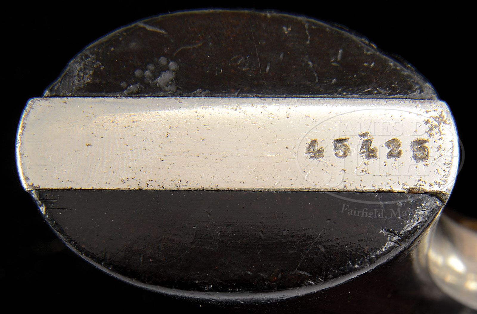 VERY FINE CIVIL WAR ERA NICKEL SMITH & WESSON #2 ARMY REVOLVER. SN 45425. Cal. 32. This is a very fine example of the popular Civil War Smith & Wesson army revolver with 6″ bbl not often found nickel finished. Based on serial number this gun was made late in the war or just after in 1865-6. This gun retains most of its original finish and is a very fine example. The gun has matching assembly numbers, and the SN is stamped on the inside of the grip. PROVENANCE: Marlan Polhemus Collection. CONDITION: Gun retains about 98% of its orig nickel finish on frame, cylinder and bbl with pitting and staining. Maker and patent marks on bbl flat and cylinder are crisp and easily read as are serial numbers. Rosewood grips are sound and solid retaining much of their orig varnished finish. Mechanically gun will not index but main spring is strong and bore has crisp discernible rifling. 4-48725 JS70 (3,000-4,000)
