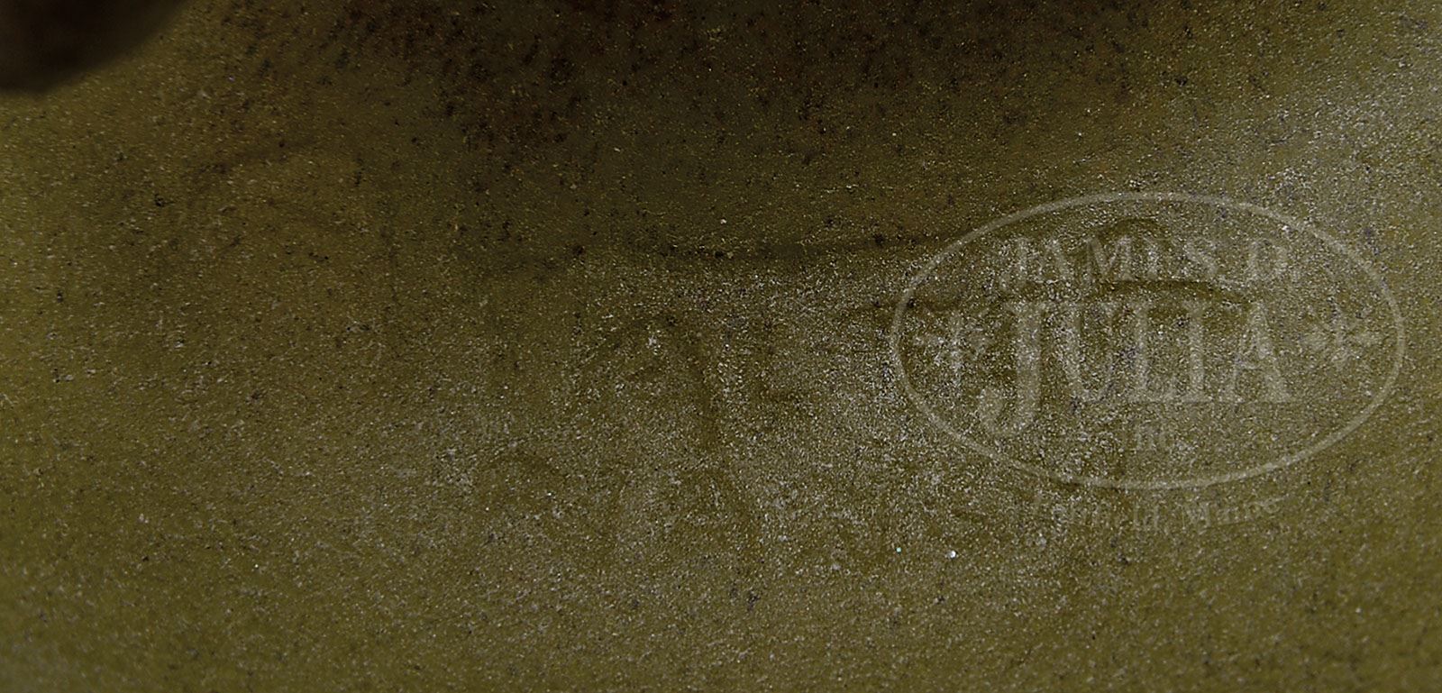 ALMERIC WALTER PATE DE VERRE DISH. A. Walter pate de verre dish has two brown mice setting among vines and yellow berries. The brown vines give way to a tan colored dish. Signed within the dish with impressed signature “A. Walter Nancy”. SIZE: 4″ l x 2″ t. CONDITION: Very good to excellent. 5-67586 (1,500-2,500)