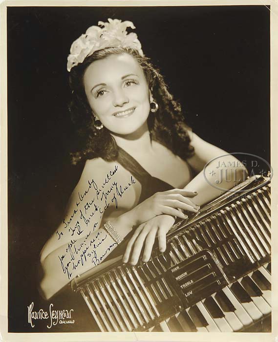 LOT OF 14 PHOTOS OF HOLLYWOOD STARS & OTHER ENTERTAINERS. Includes signed black and white studio shots of entertainment luminaries like Ethel Barrymore, Jack Benny, Joe E. Brown, Sylvia Bowman, Bobby Davis, Pauline Sherman, Judith Anderson, Harry Phelps, and others. SIZE: Varies. CONDITION: Overall very good. 1-10858-1 (300-500) Auction: Advertising, Toy & Doll - Spring 2011 Please Note: All prices include the hammer price plus the buyer’s premium, which is paid by the buyer as part of the purchase price. The prices noted here after the auction are considered unofficial and do not become official until after the 46th day. |