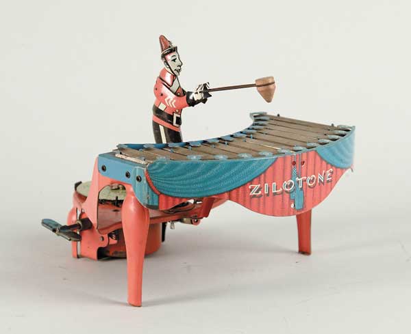 WOLVERINE “ZILOTONE” W/6 DISCS U.S.A. Clown like tin figure plays 6 different tunes on xylophone. SIZE: 8” w. CONDITION: Very good to near excellent and working. 1-46 (200-400) Auction: Advertising, Toy & Doll - Spring 2003 Please Note: All prices include the hammer price plus the buyer’s premium, which is paid by the buyer as part of the purchase price. The prices noted here after the auction are considered unofficial and do not become official until after the 46th day. |