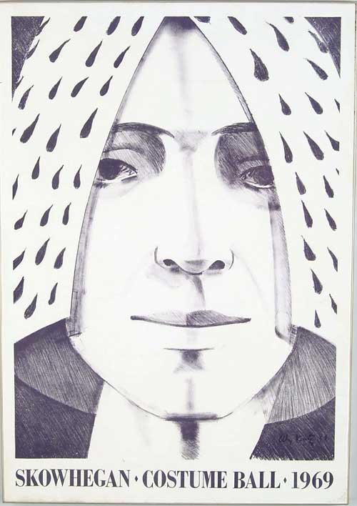 AFTER ALEX KATZ (American, 1927-) “SKOWHEGAN COSTUME BALL, 1969”. Framed poster signed in plate “Alex Katz 69”. Housed in a Lucite frame with wood stretcher. SIZE: 31” x 22”. 9-98426-1124 (50-100)