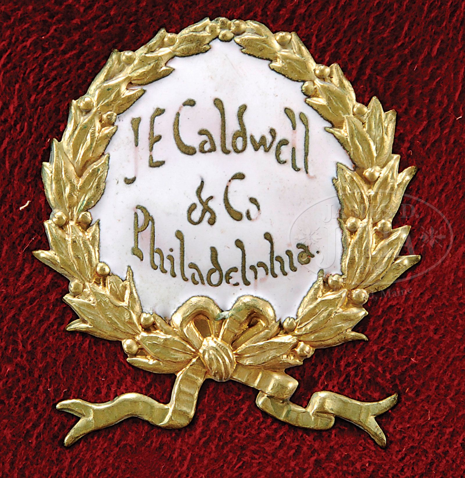 J.E. CALDWELL KINGS PATTERN FLATWARE. 72 piece set of J.E. Caldwell Kings Pattern flatware is a service for 12 which includes dinner forks, salad forks, cocktail forks, teaspoons, soup spoons and tablespoons. The spoons, salad forks and dinner forks are housed in their original J.E. Caldwell & Co oak box. While the cocktail forks are in their original J.E. Caldwell & Co. velvet covered box. CONDITION: All are very good to excellent. 5-65323 (2,000-3,000)