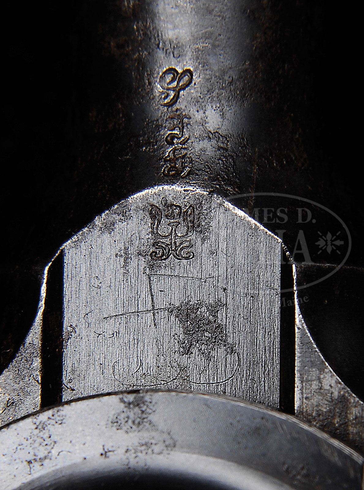 MAUSER C96 GERMANY ARMY TEST FLATSIDE. SN 411. Cal. 7.63mm. 5.5” bbl and slip-in 5-500 rear sight. The WWI German Army tested approximately 450 C96s. In first group were Early Large Ring Transitionals; the second group, that numbered from 146-450, were Large Ring Flatsides. As was typical for these pistols, this Flatside has a Prussian Eagle under the barrel, just forward of the frame, and an Imperial acceptance mark on the right side of the bbl extension. One of just a few that were not slotted for a stock. Extensive disassembly shows all parts matching including the follower, floorplate, bolt, single lug firing pin, hammer, bbl extension, locking block, all numbered subframe components, trigger and both grips. PROVENANCE: Ralph Merrill Collection CONDITION: Orig rust blue with extensive oxidation, a re-fire blued extractor and bolt stop, and a broken follower spring. Bore with strong rifling but corrosion. Very interesting Flatside whose historical importance should overshadow cosmetic considerations. (C & R). 4-47217 LMA (2,000-4,000)