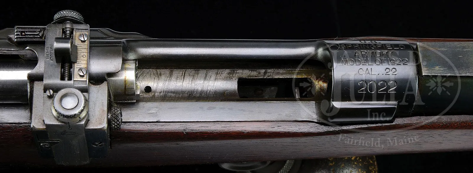 *EXTRAORDINARILY RARE SPRINGFIELD ARMORY TOOL ROOM HEAVY INTERNATIONAL STYLE TARGET RIFLE FOR WORLD FAMOUS TARGET SHOOTER, CAPT. E.C. CROSSMAN. SN 2022. Cal. 22. Extraordinarily rare and unusual Springfield Armory tool room-made heavy International style target rifle with 30″ tapered heavy rnd bbl with special heavy collar front sight base pinned in place, similar to “T”-series rifles with dovetail occupied by a Winchester globe sight. Bbl is mounted with two collars that may be integral or applied and have integral target scope base dovetails. Receiver is a standard M1922 model with orig dual striker firing pin in bolt body having the long throw for ejection and is mounted with a Lyman 48 sight. Bolt has standard shroud with headless striker. Receiver and trigger guard are mounted with Woody dbl set triggers. The magazine well of the trigger guard is without floorplate, follower or magazine attachments and has a plate screwed to the inside with a steel mount which contains a cork ball palm rest of a style observed on other Springfield Armory target rifles which are also pictured in The Springfield 1903 Rifles, Brophy. Mounted in an orig Armory half stock without reinforcing bolts, with checkered flat pistol grip and a semi-crescent serrated aluminum buttplate identical to others pictured in the referenced publication. Forestock is without grasping grooves as has been noted in early sporters and tool room pieces. Accompanied by a copy of a Springfield Research Service letter regarding Capt. Crossman’s other special Springfield rifle being sold elsewhere in this auction. This letter mentions this item and notes “that the serial number of this rifle falls within the range of a group of Cal. .22 International Match rifles; therefore I would expect No. 2022 to be an authentic example of this rare model.” Capt. Crossman is pictured on pp. 139 & 507 of the referenced publication. It should be noted that Capt. E.C. Crossman was an internationally famous target shooter and one of the more knowledgeable individuals as regards Springfield rifles. He and Col. William S. Brophy were close personal friends as was Capt. Crossman’s son, Col. Edward B. Crossman. Capt. Crossman is pictured on p. 139 and p. 507 of The Springfield 1903 Rifles, Brophy. Accompanying this lot is a copy of a letter from Col. E.B. Crossman to Mr. Brophy regarding these two rifles wherein Col. Crossman states that in 1947 he consigned a number of his father’s rifles to two different dealers for disposition and has no recollection of what he may have consigned to which dealer and has no recollection of these two pieces. PROVENANCE: Bob Rosenthal Collection; Capt. E.C. Crossman; Richard C. Ware Collection; Richard Ellis Collection. CONDITION: Extremely fine. Bbl & receiver retain virtually all of their orig armory finish with bolt body and handle polished bright. Trigger guard retains dull orig blue. Stock is sound with minor handling & storage marks and retains most of its orig armory oil finish. Cork ball palm rest retains most of its dark brown finish with a few minor nicks & scratches. Mechanics are crisp, bright shiny bore. 4-39222-1 JR120 (8,000-12,000)
