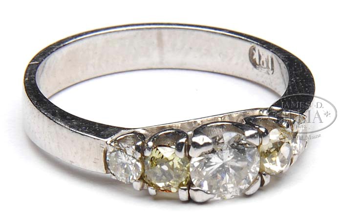 LADY’S 18KT WHITE GOLD & DIAMOND RING. Center stone approximately .30ct flanked on each side with two small full cut diamonds. The band marked “18k”. Total weight: 4 grams. SIZE: 7. CONDITION: Good. 9-97872 (500-800)