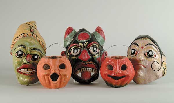 LOT OF 5 HALLOWEEN/HOLIDAY ITEMS Lot includes 2 different pulp paper jack-o-lanterns (no interior paper inserts) and 3 different H.P. pressed papier-mache masks. SIZE: Pumpkins measure 4-1/2” h. CONDITION: Good+. 1-100 (100-200) Auction: Advertising, Toy & Doll - Spring 2003 Please Note: All prices include the hammer price plus the buyer’s premium, which is paid by the buyer as part of the purchase price. The prices noted here after the auction are considered unofficial and do not become official until after the 46th day. |