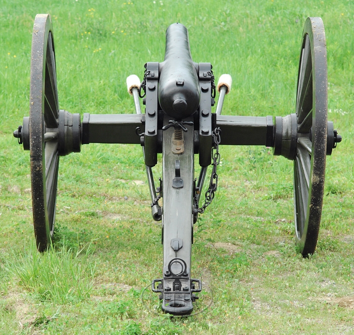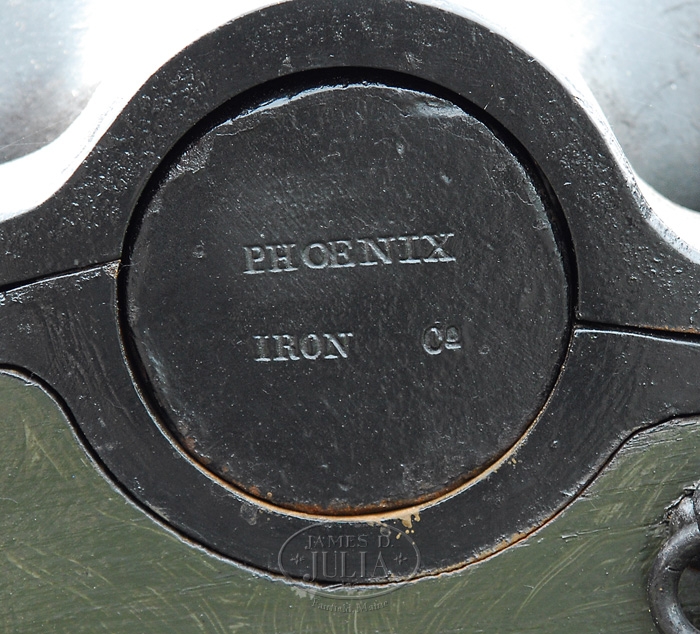 RARE CIVIL WAR 3″ ORDNANCE RIFLE ON REPRODUCTION CARRIAGE. SN 548. Authentic 3″ ordnance rifle with approx. 72″ tapered rnd bbl, with 3″ rifled bore, 3″ cascible & 3-5/8″ trunnions. Top center of bbl is deeply stamped “US” and circumference of muzzle is marked “TTSLN 548 PI CO. 1863” and at bottom “816 LBS”. Presumably the number “548” is the serial number. Right trunnion is stamped “PHOENIX IRON CO” and left trunnion iw stamped with patent information. Mounted on a fine reproduction 1860’s field carriage with approx. 59″ diameter wheels and 78″ wide axle with an overall length from muzzle to end of trail of approx. 130″. This is an authentic ordnance rifle, work horse of the Union Army, on a fine reproduction field carriage. CONDITION: Tube is in fine condition with most of its restored black finish. Carriage is extremely fine retaining most of its orig custom green paint. 8-76236 (40,000-70,000)