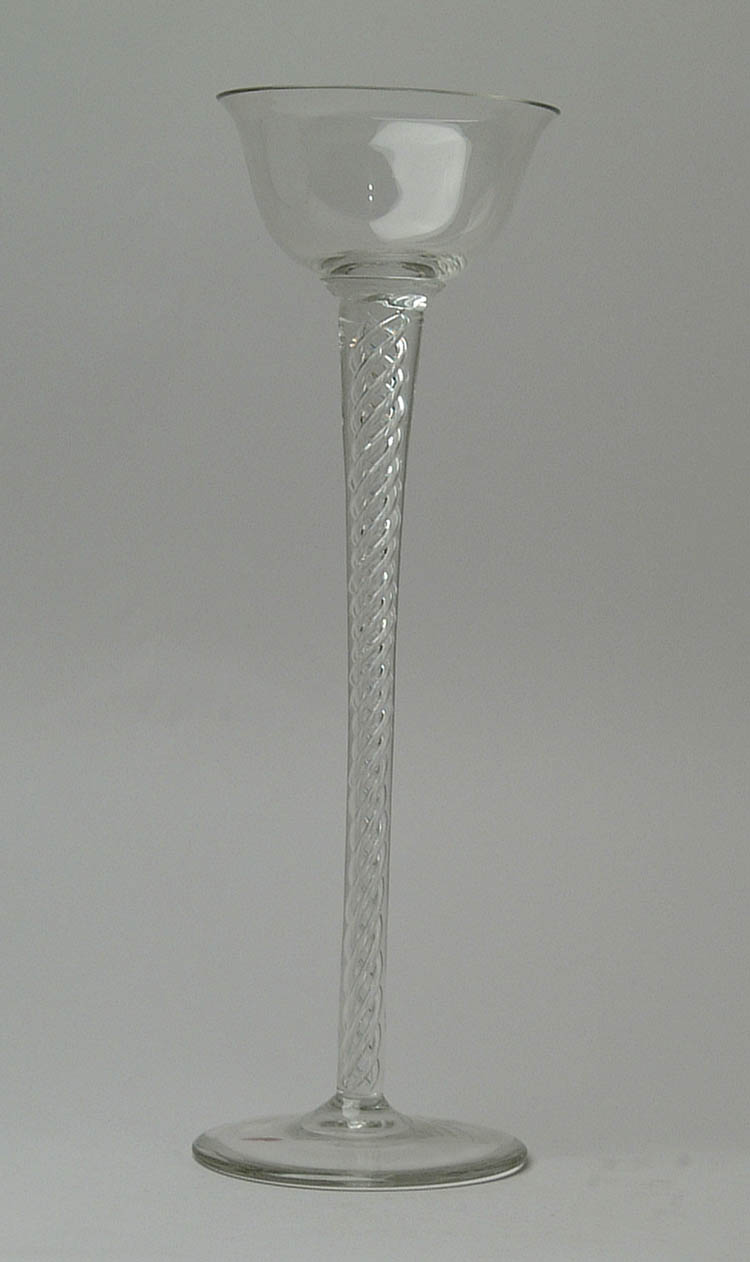 LARGE TOASTING GOBLET. Clear crystal glass with an air twist stem. Unsigned. SIZE: 19″ tall. CONDITION: Very good to excellent. 5-67120 (200-400)