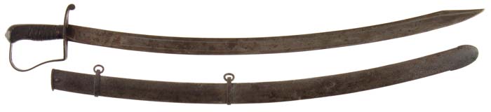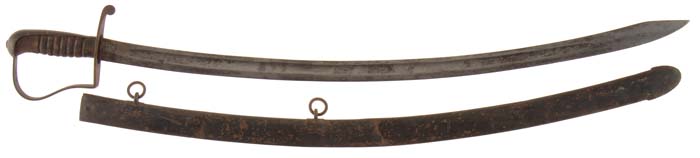 LOT OF THREE STARR CAVALRY SABERS. First sword is 1821 dated 1818 model. Marked on ricasso is” US/p/et/nstarr”. Markings on blade are weak but discernable. Blade is gray/brown, pitted overall. Scabbard is opening at seam and has a 3” jagged area in center where opened. Leather grip is possibly replaced but intact. The second sword is model 1818 flat blade cavalry marked “p/hhp/nstarr”. Leather grip is 80% intact but dry and flaking. Hilt and scabbard are both pitted. Blade is gray and brown with old sharpening and scattered pitting. The third sword in the lot is an 1818 cavalry marked “US” over “P/LS/NSTARR”. Blade is gray with areas of shine. Grip retains remnants of its orig leather. Scabbard has two large dents and retains half or more of its orig paint. 4-30139, 4-30140, 4-30151 JS52 (2,000-3,000)