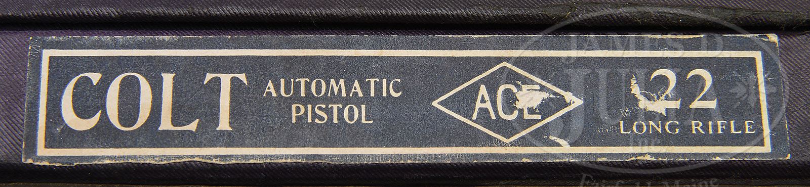*SCARCE PRE-WAR COLT CIVILIAN ACE SEMI-AUTO PISTOL WITH BOX. SN 10106. Cal. 22LR. Blue finish with 4-3/4″ solid bbl. Adjustable rear sight and usual markings on the slide with rampant Colt at the left rear end. It is mounted with full checkered walnut grips and accompanied by one orig. all blue magazine with marked base plate. Accompanied by its orig dark burgundy, hinged lid cardboard box, matching numbered to this pistol. Accompanied by an orig bi-fold owners pamphlet, a shooting suggestions pamphlet and its orig target. According to The Book of Colt Firearms, Wilson there were about 11,000 of these pistols produced from 1931 to 1947, 10,500 of which were made through 1941. This pistol was produced in 1939. CONDITION: Extremely fine. Overall retains about 97-99% crisp orig factory blue with only faint muzzle edge wear on the slide from laying in the box. Grips are crisp and show faint diamond point wear. Magazine is very fine with thinning on both sides. Mechanics are crisp. Brilliant shiny bore. Box is fine with 3 or 4 small edge nicks and a small tear in the paper covering on the bottom. End label has a couple small wear spots, but is sharp and clear. Pamphlets and target are fine. 4-48318 JR96 (4,000-6,000)