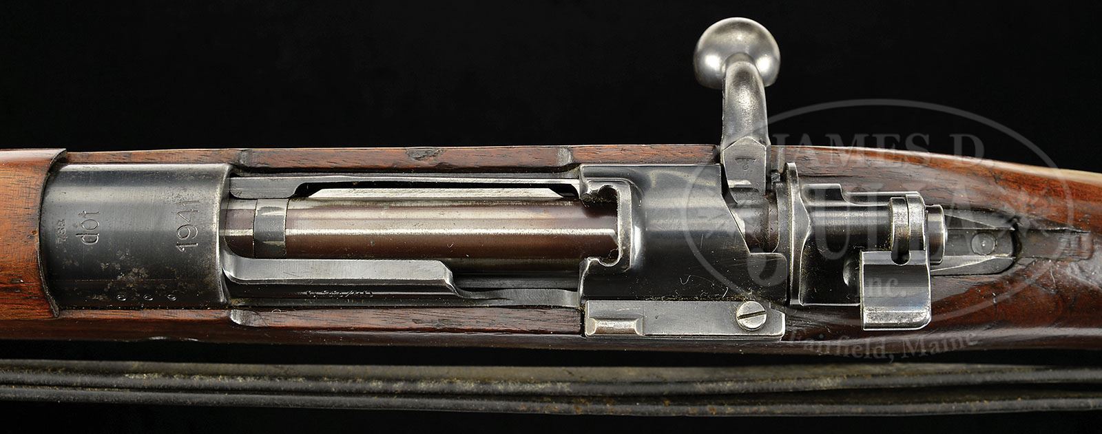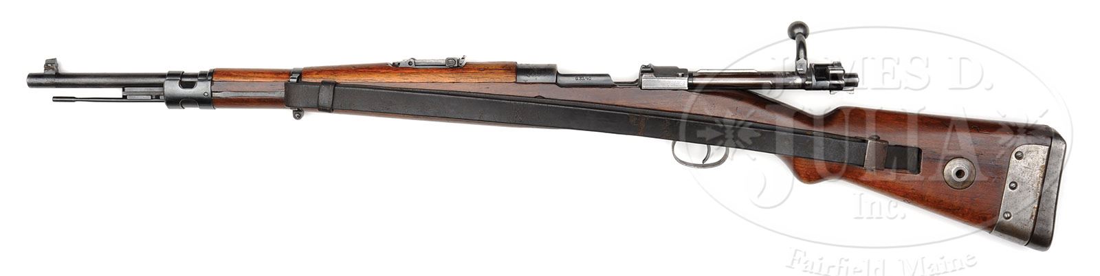 *◊ WAFFENWERKE BRÜNN 8MM G33/40 CARBINE. SN 4669c. Cal. 8mm. G33/40 Mountain Carbine manufactured under German supervision at Waffenwerke Brünn, 1941. Top receiver marked “dot 1941”, WaA 63, and left receiver is marked with Nazi era firing proof, SN 4669c. Walnut stock is marked SN 2282a and WaA 63 at wrist and butt. Correct G33/40 hollowed out bolt matches receiver. Comes with authentic wartime leather sling. PROVENANCE: Collection of Dr. Geoffrey Sturgess. CONDITION: Cal. 8mm. G33/40 Mountain Carbine manufactured under German supervision at Waffenwerke Brünn, 1941. Top receiver marked “dot 1941”, WaA 63, and left receiver is marked with Nazi era firing proof, SN 4669c. Walnut stock is marked SN 2282a and WaA 63 at wrist and butt. Correct G33/40 hollowed out bolt matches receiver. Comes with authentic wartime leather sling. 4-53186 DW22 (1,200-2,000)