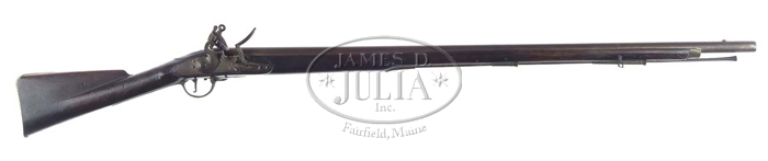 WONDERFUL UNIT MARKED WAR OF 1812 3RD MODEL BROWN BESS MUSKET. Cal. 75. NSN. Used by a British soldier in Company H of “Buck’s Volunteers” officially the 85th of The King’s Regiment of Light Infantry. This musket has a 39-1/4″ rnd bbl with square base front sight/bayonet lug. It has two crown over crossed sword proofs at the breech end with standard lock markings of “TOWER” vertically behind the hammer with a crown over “GR”, the cipher of King George III and the crown over arrow acceptance proof. It is mounted in a 1-pc walnut stock with brass furniture, raised teardrop side panels with a raised panel around the top tang and a smooth brass 3-step buttplate. Forestock & trigger guard have sling wires & the stock has a swell at the nose pipe. Trigger guard has an acorn finial & the trigger bow is engraved “BUCK’S VOL’S / H”. There is a small two initial proof on the left side flat. This important musket, as previously noted, was used by a member of the 85th Regiment, Buck’s Volunteers, The King’s Regiment of Light Infantry, apparently in Company H. The 85th Regiment was a part of Wellington’s Army & came to the United States from France in 1813 and almost immediately participated in the Battle of Bladensburg and the capture & burning of Washington. During the battle, the British had 64 killed & 185 wounded with the Americans losing 26 killed & 51 wounded. Later that year, in December, Buck’s Volunteers participated in the Battle of New Orleans where 6,000 British troops under Gen. Keane & their fleet attacked the 12,000 American defenders of the garrison under Gen. Jackson. British were repulsed and in 1814 Buck’s Volunteers returned to England. This musket almost certainly was captured during one of these battles, very likely at Bladensburg, since it was found in the Northeast. Consignor states he has owned it for many years. CONDITION: Extremely fine. Bbl retains a dark, even, moderately pitted attic patina with traces of the orig bright finish around the bbl channel. Lockplate & hammer are crisp with a light patina and a lot of orig bright finish showing through. Stock has a hairline & a large chip back of the top tang with a chip missing from in front of the lock and scattered worm holes about with a splice by the right bbl channel at the tip and another on the left side. But for these minor damages & repairs the wood is extremely fine with good sharp edges & a fine dark smooth patina. Mechanics are crisp. It has a trumpet head ramrod which appears to be an old replacement. Bore is dark & crusty. 4-56474 JR711 (10,000-12,500)
