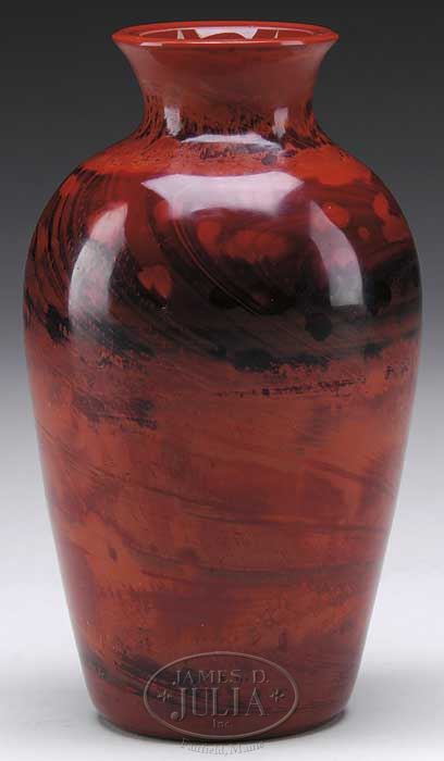 PEKING GLASS VASE. 18th/19th century, China. With vibrant marbleized realgar coloration. SIZE: 7-1/2″ h. CONDITION: Very good. 9-26540 (300-500)