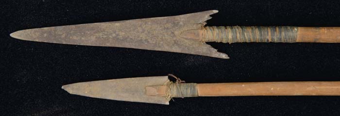 COMMANCHE BOW CASE AND QUIVER. A rare pre-reservation tanned hide bow case and quiver with a wide carrying strap. Decorated with hide fringe at the bottom of the strap and quiver, accompanied by a 4-foot long bow and 9 arrows, some with steel tips. Circa mid-19th century, accompanied by detailed history indicating it was first removed from a dead Comanche Indian by a Texas Ranger in 1856. In the early 1900s it was added to the Boy Ranger Museum in Fort Smith, Arkansas, later to another Fort Smith Museum, and later de-accessioned. A detailed portfolio with copies of old images shows interior of Boy Ranger Museum in 1947. A nice Commanche piece with good history. SIZE: Overall length with bow: 4 feet. CONDITION: Hide is very fragile and torn in certain areas. The bow shows some slight old cracks. 4-30258 JJK1 (6,500-8,500)