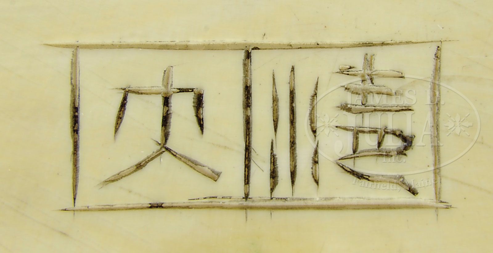 PAIR OF MANDARIN EQUESTRIAN FIGURES. Early 20th century, China. Each figure in full ceremonial dress with quiver of arrows mounted on horseback on a floral carved plinth with two character mark beneath. Mounted on a demilune hard wood stand. SIZE: Carving: 7″ h. Overall: 8-1/2″ h. CONDITION: With undisturbed surfaces and good patina. Male figure with damage to riding crop. Female figure with damage to proper right ear of horse. Otherwise good. 7-70118 (800-1,200)
