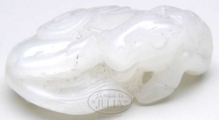 JADE HORSE. 19th century, China. Highly translucent white stone. SIZE: 1-3/4″ l x 1-1/4″ w. CONDITION: Very good. 7-73142 (200-300)