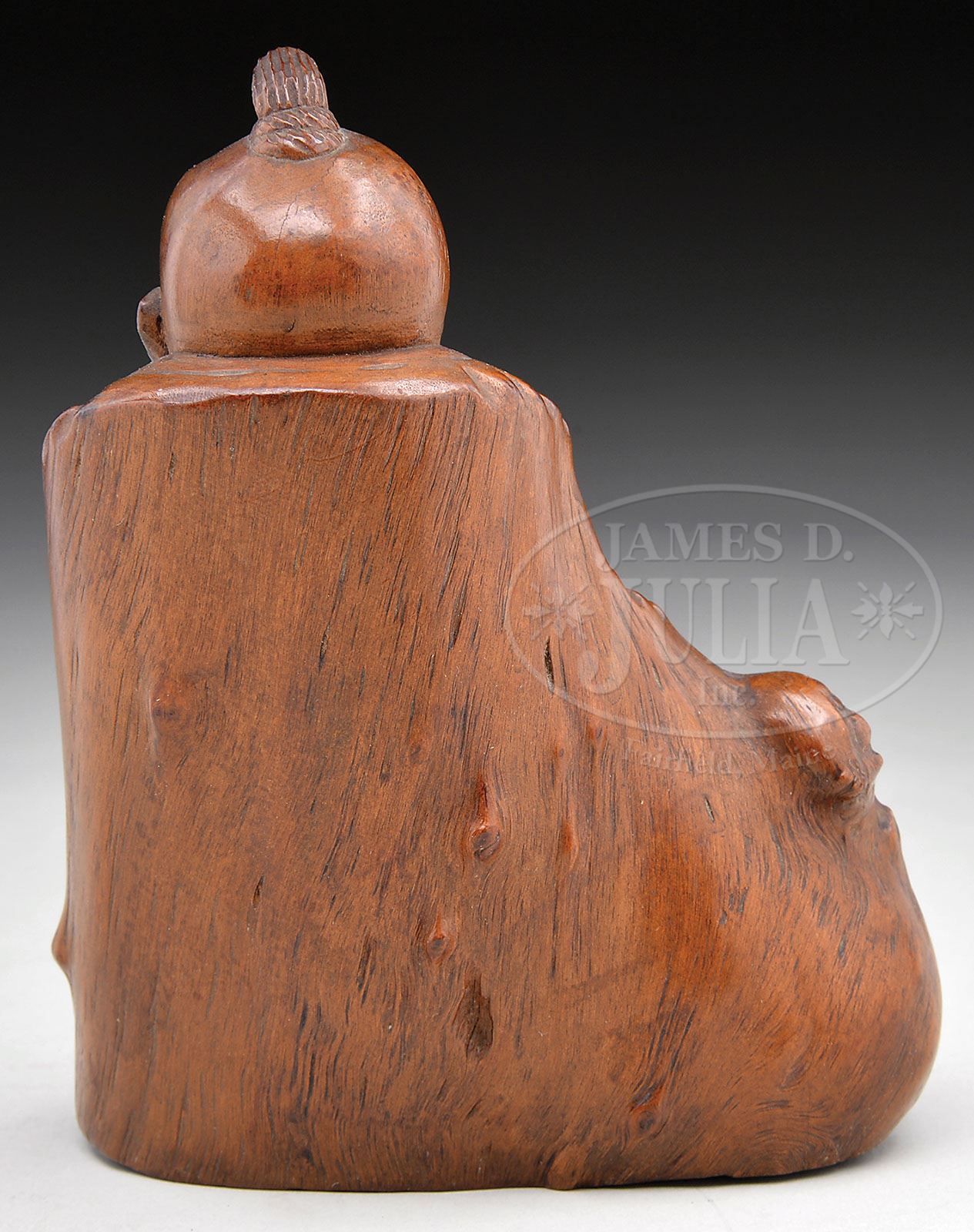 ROOT CARVING. 19th century, China. Carved as a sleeping scholar. SIZE: 5-3/4″ h. CONDITION: Old surfaces. Good patina. 7-73666 (200-300)