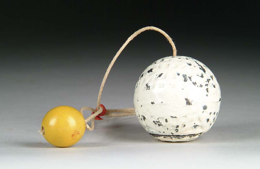 WHITE GOLF BALL TOY CAP BOMB. BOMB21.2. Manufactured by Hubley, circa 1925. Base of ball opens for caps. Bomb with original pull string. SIZE: 1-5/8″ d. CONDITION: Very good. MC 1-4157 (200-300) Auction: Advertising, Toy & Doll - Spring 2005 Please Note: All prices include the hammer price plus the buyer’s premium, which is paid by the buyer as part of the purchase price. The prices noted here after the auction are considered unofficial and do not become official until after the 46th day. |