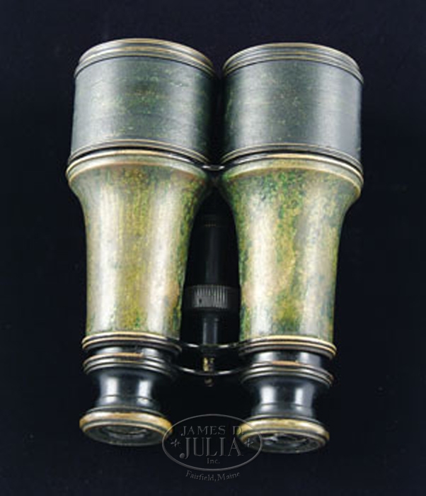 A wonderful opportunity to acquire a pr of battlefield recovered field glasses with unmistakable provenance to the Battle of Wounded Knee and extremely strong attribution to the Custer Massacre and Gen. George A. Custer, all documented in testimony and writing within a decade or so, following the 1876 massacre. 4-55300 CW106 (45,000-55,000)