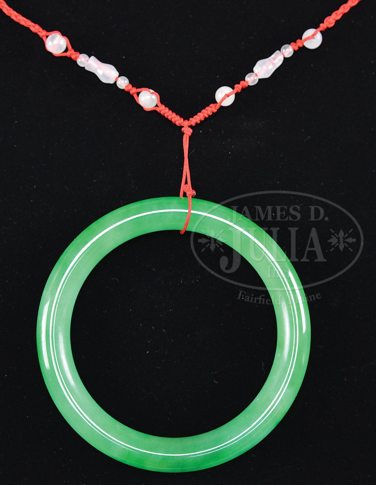 NATURAL JADEITE BRACELET. Grade A light and dark mottled green color. Accompanied by Gemological Lab & Appraisal Inc. certificate of grade and authenticity. SIZE: 64.50 mm approx. dia. CONDITION: Very good. 9-29767 (500-1,500)