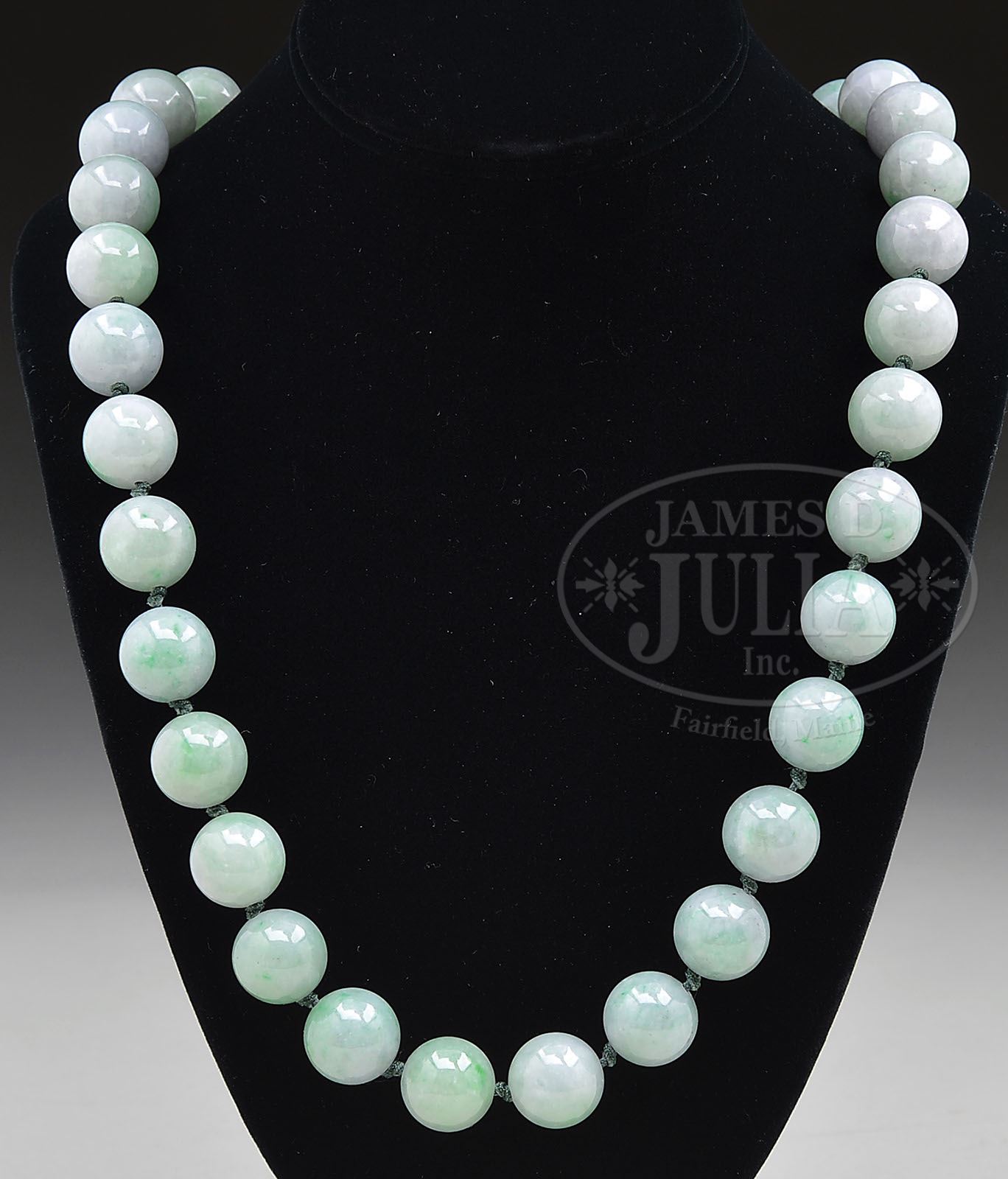 SET OF JADEITE BEADS. Stones of lavenders and green color. SIZE: Each bead approximately 1/2″ dia. 24″ l. CONDITION: Very good. 9-28662 (2,800-3,200)