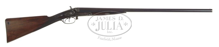 PARKER $50 GRADE LIFTER HAMMER DBL BBL SHOTGUN. Cal. 12 ga. SN 6012. Built on about a #2 frame with 30″ steel bbls choked IMP-CYL/IMP-CYL with smooth rib, sgl bead & extractors. Lockplates have the maker’s name on each side. Wood is nicely figured American walnut with checkered forearm with wedge & straight stock, 14-1/4″ over a smooth steel buttplate. CONDITION: Fine to very fine. Bbls retain 92-94% orig blue with minor nicks & scratches. Receiver retains traces of case colors in sheltered areas & the lockplates about 50% dark faded case colors. Forearm has two replaced slivers at the tip and shows heavy wear, freshened checkering & most of a restored finish. Stock is sound with a bruise on the wrist and a couple of gouges on the butt with usual handling & use marks. Retains most of its orig varnish. Mechanics are fine, moderate to heavy pitting in the bores. 5-60380 JR98 (1,250-1,750)