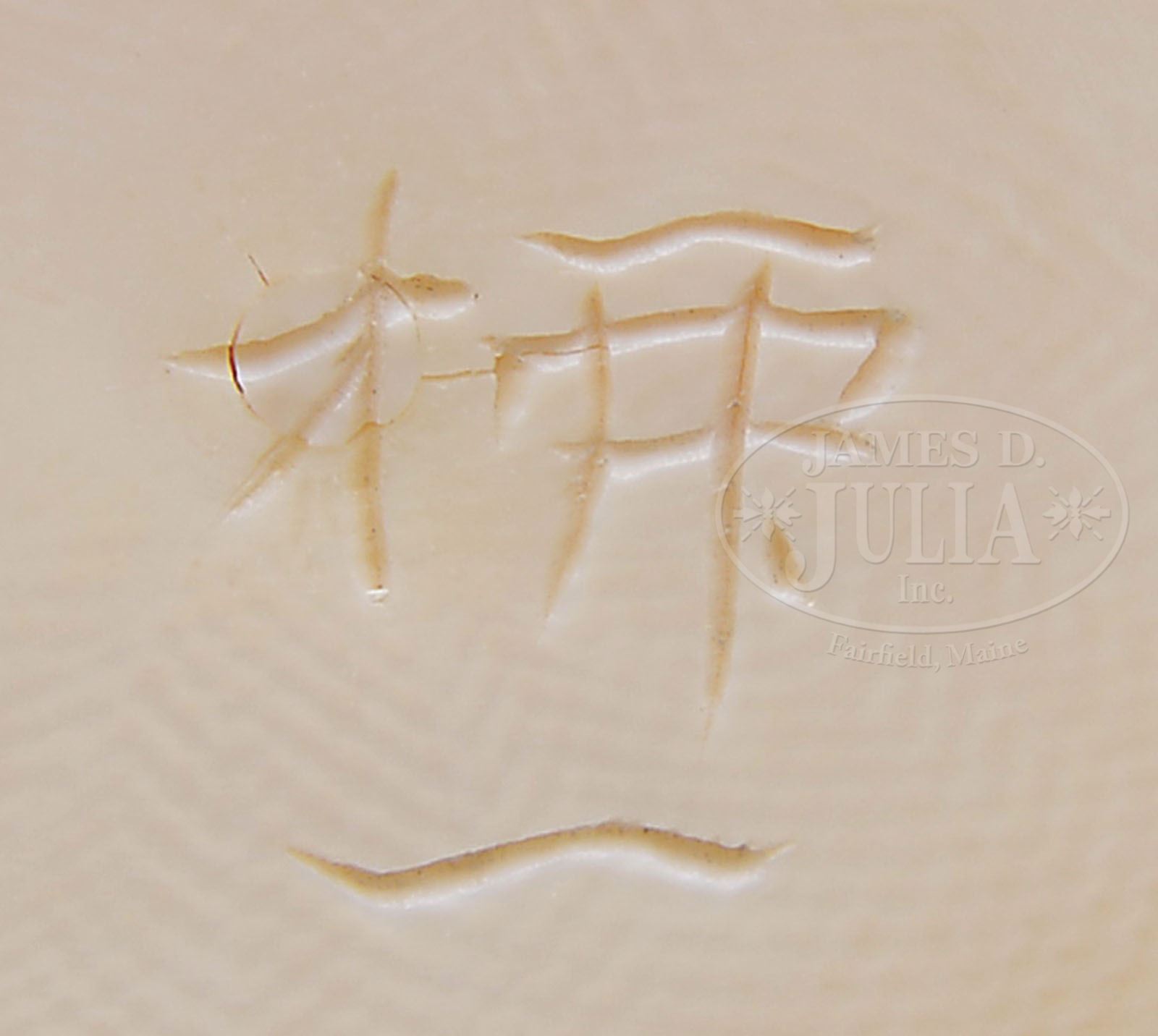 TWO CARVINGS. 19th century, Japan. 1) Carving of a small boy standing on a stump, signed on base. Accompanied by hardwood stand. 2) Bone carving of a tradesman. SIZE: 1) 6″ h. 2) 4-1/2″ h. PROVENANCE: From a fine Augusta, Maine estate. CONDITION: 1) Loss to root of stump and to tips of fingers. Otherwise good. 2) Object missing from right hand. Otherwise good. 9-29280 (300-500)