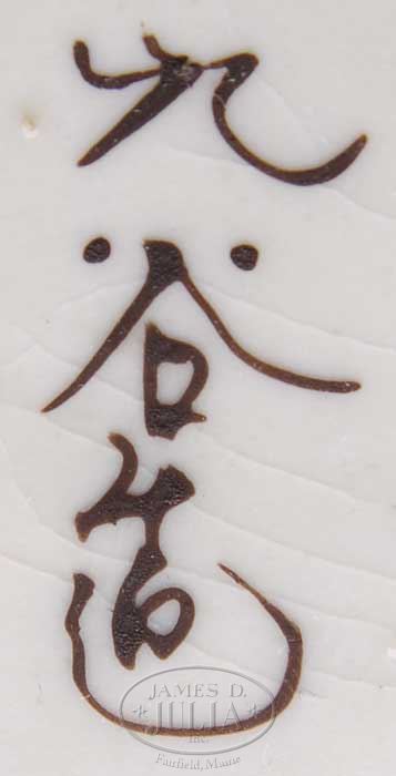 SIGNED KUTANI BOWL. Japanese, 19th Century. Red stoneware of typical design. Signed “Kutani” beneath the base. SIZE: 3-1/4″h x 8-1/2 dia. CONDITION: With multiple tight hairline cracks, otherwise good. 9-24192 (400-600)