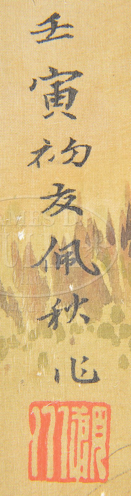 SET OF TWO LOOSE PAINTINGS, CHINA, ATTRIBUTED TO CHEN PEIQIU (B. 1922). Ink and colors on silk, one depicting grasshoppers and flower branches, dated renyin year; the other depicting praying mantis and peapods, dated guimao year, each signed “Peiqiu,” with two seals. SIZE: 16” x 9-1/2”, 18-1/4” x 10-1/2”. CONDITION: Good condition, surface grime. Mounted in hanging scroll format without scroll ends. 9-28987 (400-600)