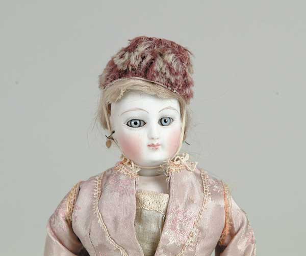 12″ SWIVEL NECK FRENCH FASHION DOLL A French fashion with pale bisque, and light-blue eyes with original wig and earrings on a kid body. Doll is marked “5/0″ on rear of head; possibly made by Jumeau? SIZE: 12”. CONDITION: Replaced clothing. 1-29954 (1,200-1,500) Auction: Advertising, Toy & Doll - Spring 2003 Please Note: All prices include the hammer price plus the buyer’s premium, which is paid by the buyer as part of the purchase price. The prices noted here after the auction are considered unofficial and do not become official until after the 46th day. |
