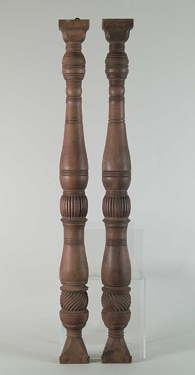 PAIR OF CARVED WALNUT HALF COLUMNS. Fitted for hanging, a nice architectural decoration. SIZE: 42” l. CONDITION: Very good. 9-92451 (200-400)