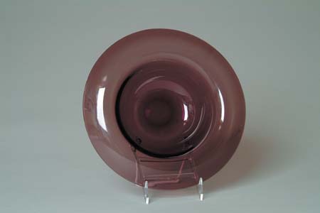 STEUBEN CENTER BOWL. Amethyst glass with folded over rim. Unsigned. SIZE: 11-1/2” dia. CONDITION: Very good to excellent. 5-69727 (300-500)