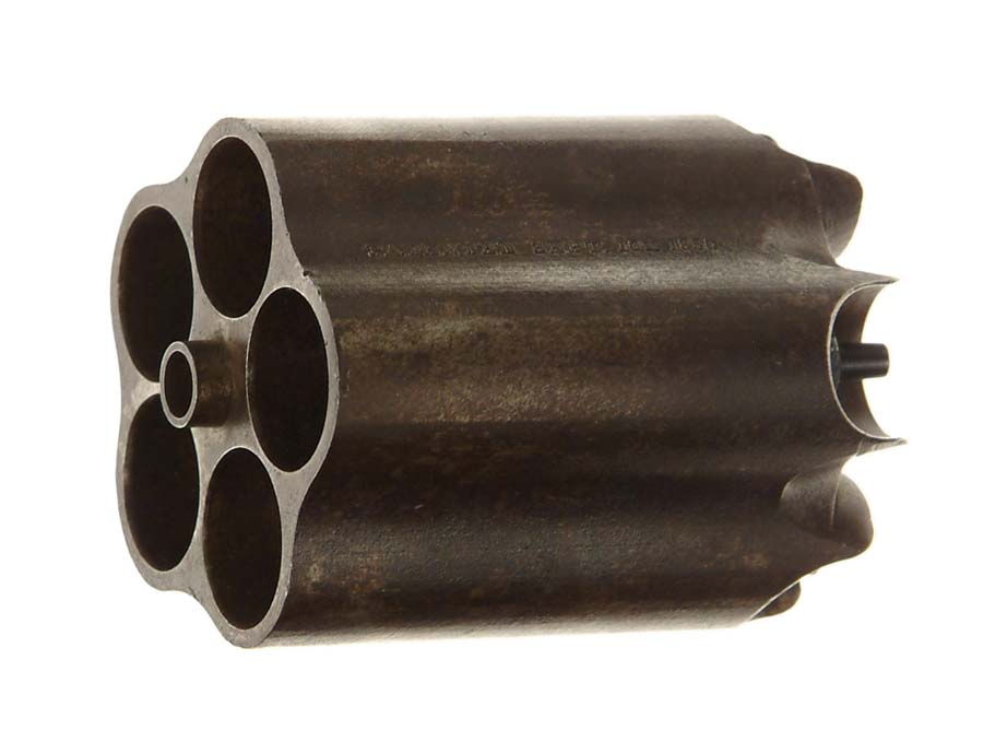 COLT ROOT SHOTGUN CYLINDER. .75 cal. Marked “PATENTED SEPT. 10th 1850” in one of the flutes. CONDITION: Rust brown patina overall with moderate pitting. Nipples have orig blue and are probably replaced. From the collection of the late Bruce McDowell. 4-54830 FS135 (500-800)