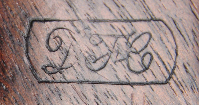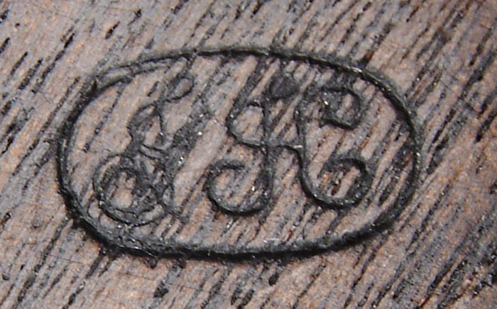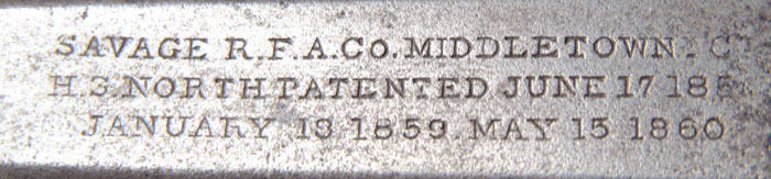 SCARCE MARTIALLY MARKED SAVAGE NAVY PERCUSSION REVOLVER. Cal. 36. SN 1306. Usual configuration with 7-1/8″ oct bbl, brass pin front sight, 6-shot cyl, 2-pc walnut grips with heart-shaped trigger guard. Grips have a fine legible “DFC” cartouche on left side & what appears to be “JH” cartouche in an oval on right side. Bbl, frame, sideplate, cylinder & rammer housing have small inspector marks. Of the approx. 20,000 of these revolvers produced, 11,984 of them were under military contract, majority of which do not have inspector marks or cartouches. CONDITION: Fine. No orig finish remains being a medium gray patina with light pitting around forcing cone area, heavier on sideplate. Grips are fine with slightly chipped toes & some battering on bottom. Mechanics are fine, strong bore with light pitting. 4-58861 (3,000-4,000)