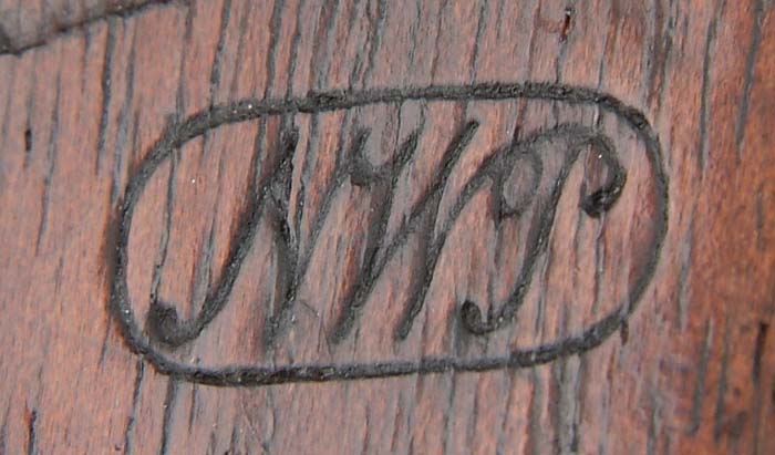 ASTON MODEL 1842 PERCUSSION MARTIAL PISTOL. Cal. 54. NSN. 8-1/2” rnd bbl. Standard markings with 1847 date at rear of lockplate and on bbl tang. Sharp “WAP” and “NWP” cartouches on left side of stock. CONDITION: Gray patina overall with light pitting on bbl and a mottled appearance on lockplate. Brass has a dark patina. Stock is sharp. Mechanically fine. 4-30482 FS104 (1,250-1,750)