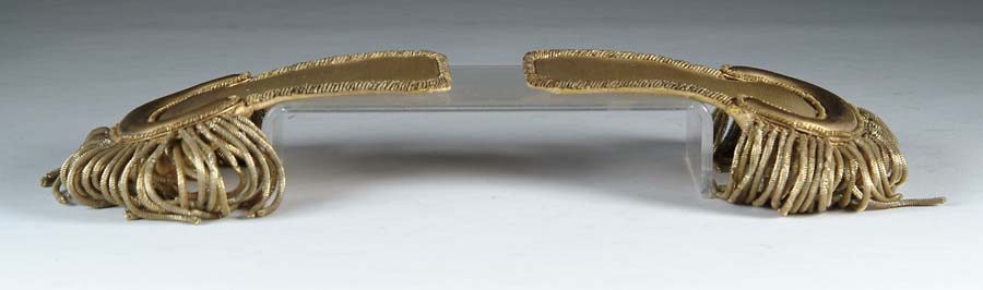 PAIR OF CIVIL WAR-ERA EPAULETS. Nice matched pair of bullion epaulets with yellow silk backs. Would display nicely on Civil War-era militia coat. 4-54147 JS59 (100-200)