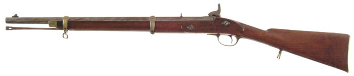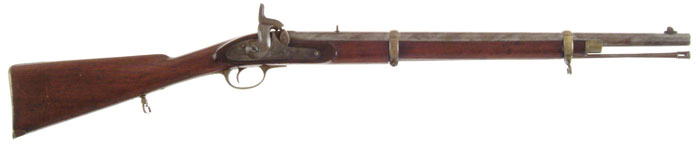 CONFEDERATE NEW ORLEANS COOK & BROTHERS MUSKETOON. Cal. 58 SN 230. New Orleans made carbines or musketoons are very rarely encountered. This is only the second example we have seen. Gun conforms to measurements of the standard Athens made musketoon with an overall length of 39-5/8”, bbl length of 24-1/8”. Bbl shows typical Damascus twist of other Cook products. Bbl is marked, “Proved” at breech, and “Cook & Brother NO 1862” in one line of rear sight. Bbl retains orig fixed rear sight and typical brass New Orleans style sight. Bbl also shows typical crowning associated with other carbines and musketoons. Bbl is retained by two brass clamping bands. Gun is further brass mounted with brass butt-plate, nose cap, trigger-guard and sling swivels. Iron ramrod is of the correct Cook/Enfield style. Lock is marked rear of hammer with a Confederate first national flag. Forward of hammer is marked, “Cook & Brother, NO, 1862, 230”. SN 230 is only SN found on gun. However, inside lock the number 60 is found on several screws. Inside lock-plate the back of the bbl and breech have matching roman numerals and a small “81” stamped on each. There is also a small, “113” stamped in stock at edge of butt-plate tang (we believe this to be collectors number however). This gun appears orig and authentic in every regard though Cooks are normally thought to have SNs on more parts. Other early New Orleans made Cooks of other configurations show similar characteristics and less serial numbered parts. CONDITION: Stock is solid and sound, still retaining varnish about 1/2” chip of wood missing from toe. Bbl is grey/brown with areas of brightness clearly showing the Damascus twist, pitting at breech. Bbl markings are crisp. Bore is very good. Lock is smooth with areas of shine. There are traces of case colors under hammer. Brass mountings exhibit good yellow/green patination. Front sight exhibits untouched coppery red/green patination. Edwards Collection 4-58555 JS14 (20,000-30,000)