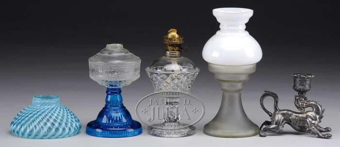 SIX ASSORTED LAMP PARTS Including two bases, two shades and two miscellaneous pieces. CONDITION: Good. 5-65572 (200-400)