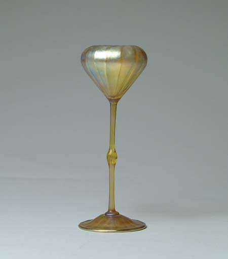 TIFFANY FLORIFORM VASE. Iridescent gold coloring with vertical ribbing, applied ribbed foot. Signed “L.C.T. 4394A”. SIZE: 10-3/4” t. CONDITION: Very good to excellent. 5-68477 (2,000-3,000)